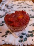 As I started the December segment for my Almost Vintage Holiday theme, I discussed the great Letter from the Editor that Ruth Reichl wrote to introduce the December 2003 edition. She referenced her ten-years-old self and undertaking making a réveillon (French-Canadian Feast) for her family. Even though her Bûche de Noël resembled Stonehenge, her . . . → Read More: Spicy Tomato Cranberry Preserve