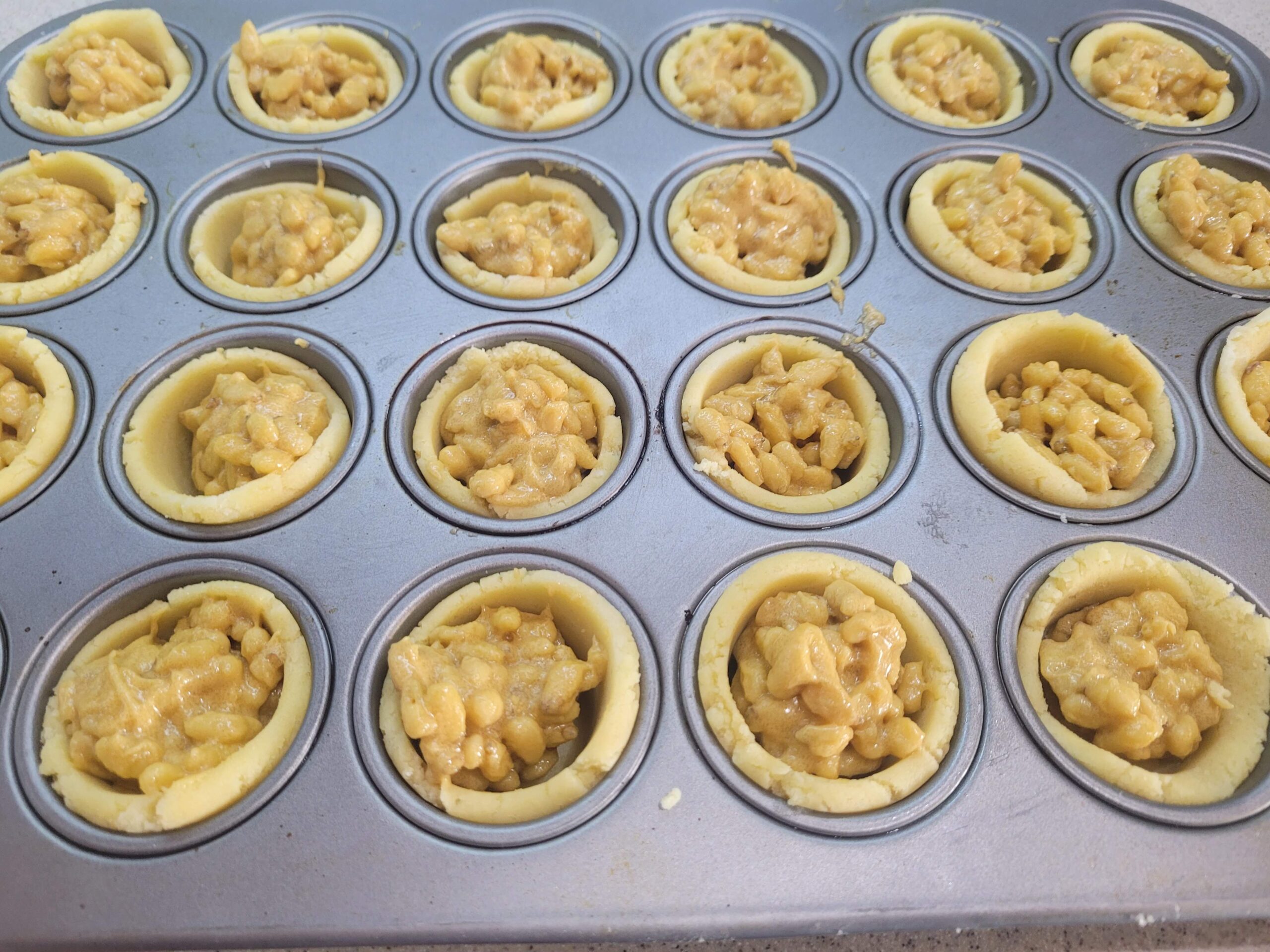 - Bake tassies until filling is bubbling and pastry is golden brown, 12 to 15 minutes. Remove from oven and immediately run a sharp thin knife around the edge of each tassie. Place the entire pan on a cooling rack for 10 minutes. Remove tassies from pan and transfer to rack to cool completely.